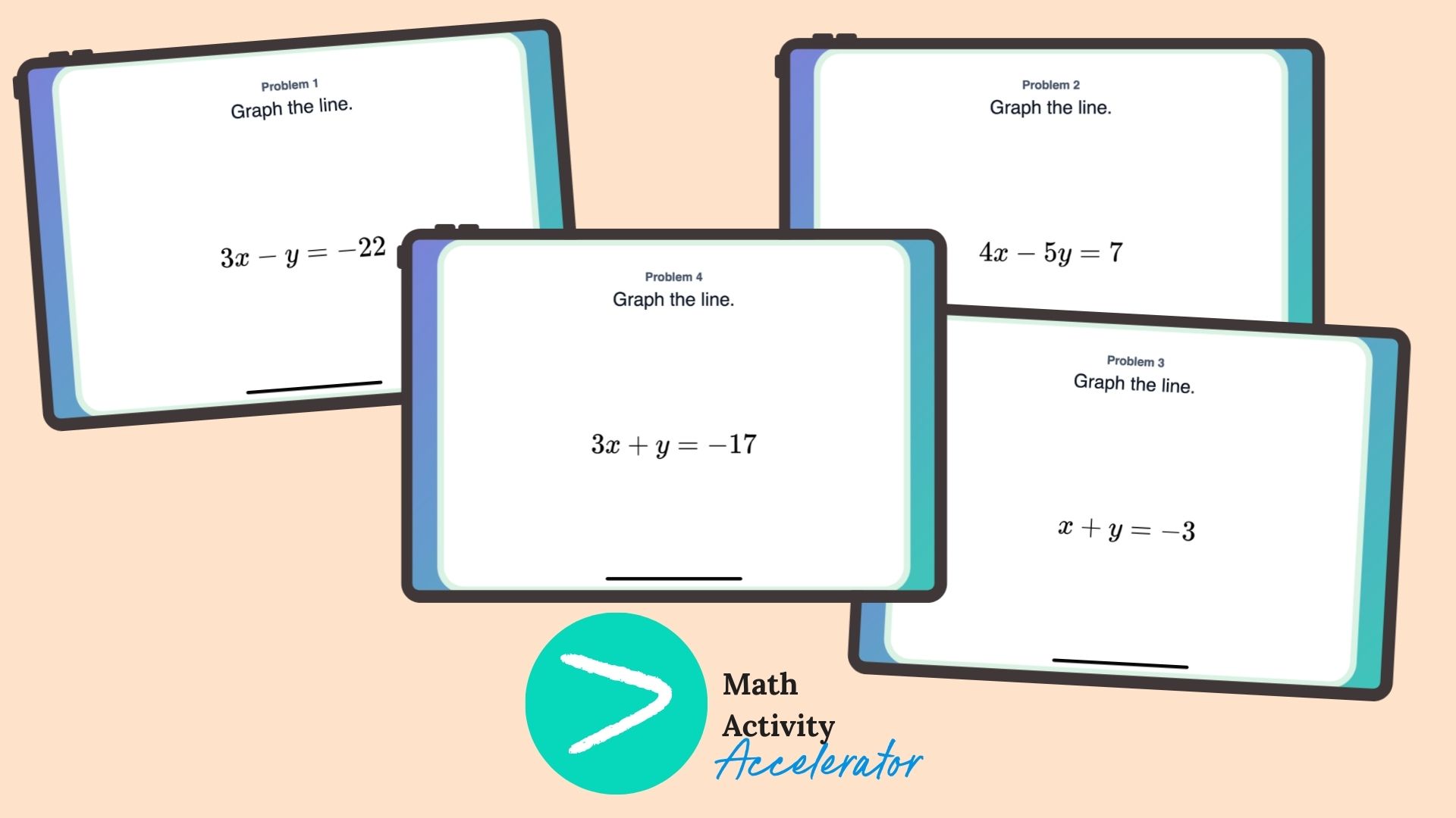 It’s important for students to understand that slope intercept and standard form are graphing the same line. Remind students that they aren’t doing something totally different, they are still graphing lines, but sometimes the lines are written in different ways. Again, cut and paste activities save the day so that students can match graphs with equations written in both standard and slope intercept form to strengthen their understanding that these are the same thing, just in different forms. The Math Activity Accelerator is a great tool to create these instantly and you can even change the number of problems to make differentiation a breeze.