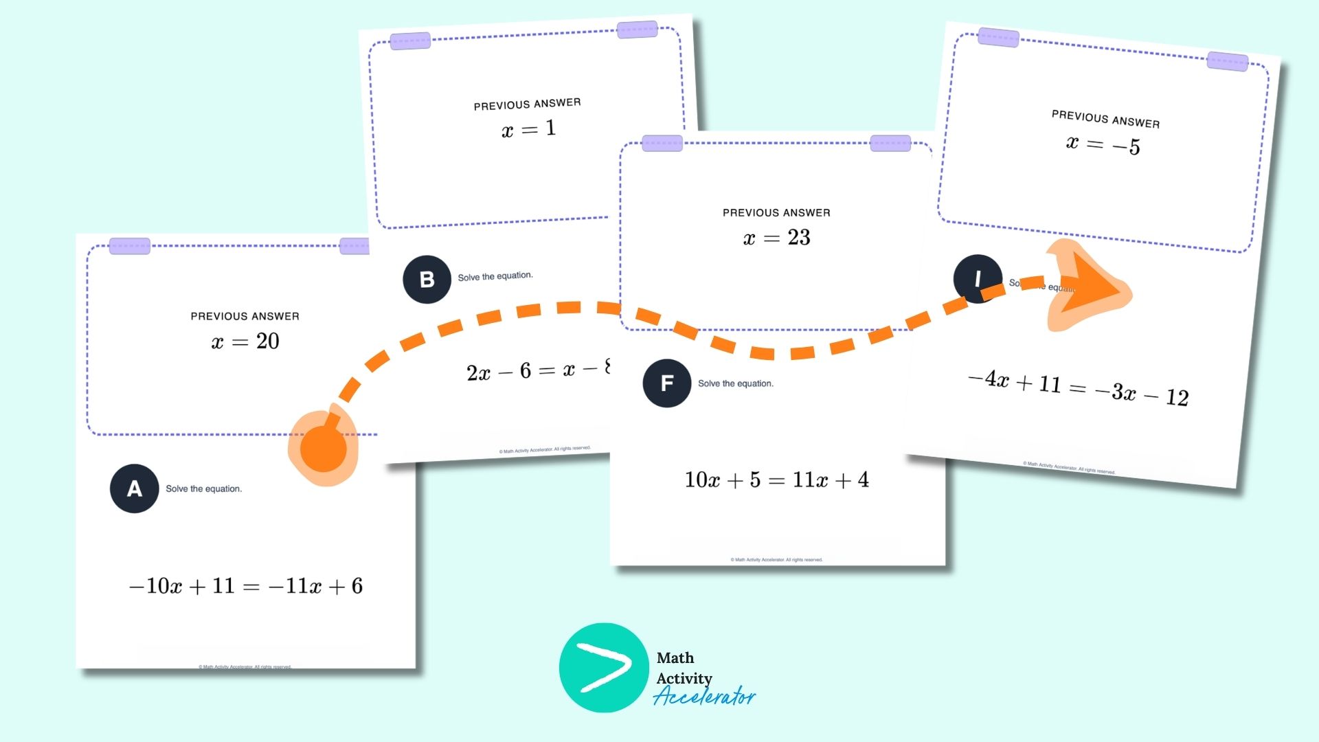 Scavenger Hunts - like these that you can generate and customize with one click - are perfect for all students, but they are especially wonderful for students who struggle with solving equations in Algebra because they are self checking, they are kinesthetic and get students up and moving around the room (or hallway and require students to focus on only one problem at a time. Pro tip: If you’re worried about classroom management with scavenger hunts, I suggest having students all rotate at the same time - instead when they finish a problem - to keep the movement happening at the same time.