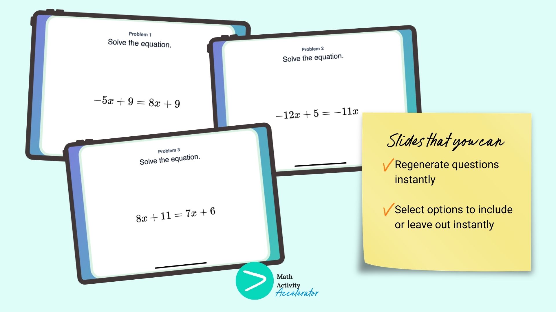 Math Activity Accelerator is so much more than any other worksheet generator out there. We’re on a mission to give teachers their weekends back by creating engaging activities instantly. Give it a try for free, no credit card required, and see how easy it is to create math activities your students love, not ones they’ll throw in the trash.